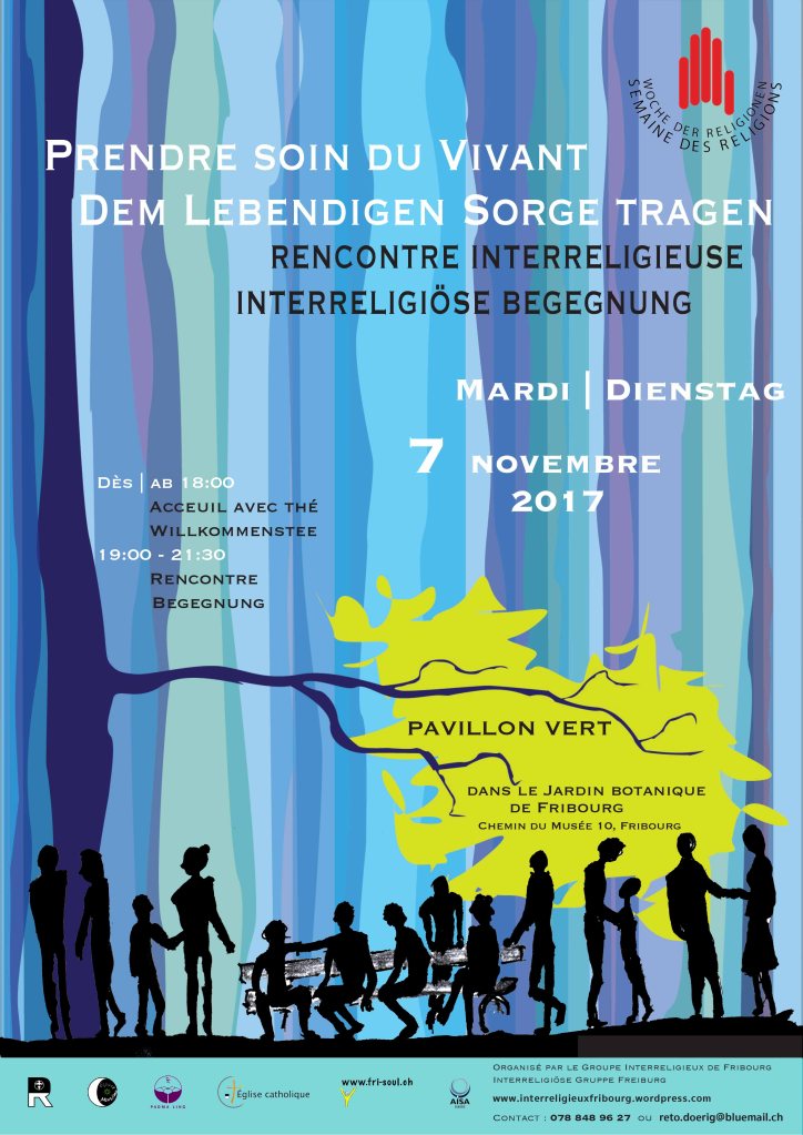 Ecologie, Interreligieux - Begegnung Woche der Religionen – Semaine des religions à Fribourg Publié par frisoul le 28 septembre 201712 octobre 2017 Prendre soin du vivant / Dem lebendigen Sorge tragen 7 novembre 2017 Communiqué BIL SDR-WDR 2017 Prendre soin du vivant Partager : Envoyer un lien par e-mail à un ami(ouvre dans une nouvelle fenêtre) E-mail Imprimer(ouvre dans une nouvelle fenêtre) Imprimer J’aime chargement…