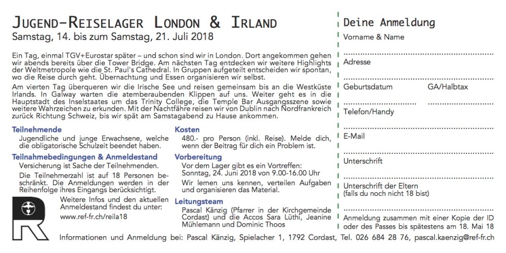 Voyage / Reise JUGEND-REISELAGER LONDON & IRLAND / 14.-21. JULI 2018 Publié par frisoul le 23 avril 201823 avril 2018 Partager : Cliquer pour envoyer un lien par e-mail à un ami(ouvre dans une nouvelle fenêtre) E-mail Cliquer pour imprimer(ouvre dans une nouvelle fenêtre) Imprimer J’aime chargement…