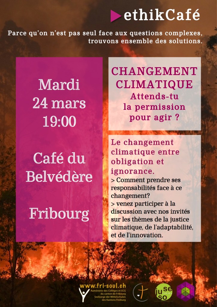 Ecologie ethikCafé Publié par frisoul le 10 février 202023 mars 2020 Changement climatique: attends-tu la permission pour agir? / Klima-Wandel: Worauf wartest du? 24.03.2020 – Le café est annulé en raison de l’épidémie de Coronavirus. Une nouvelle date sera proposée ultérieurement. Partager : Cliquer pour envoyer un lien par e-mail à un ami(ouvre dans une nouvelle fenêtre) E-mail Cliquer pour imprimer(ouvre dans une nouvelle fenêtre) Imprimer J’aime chargement…