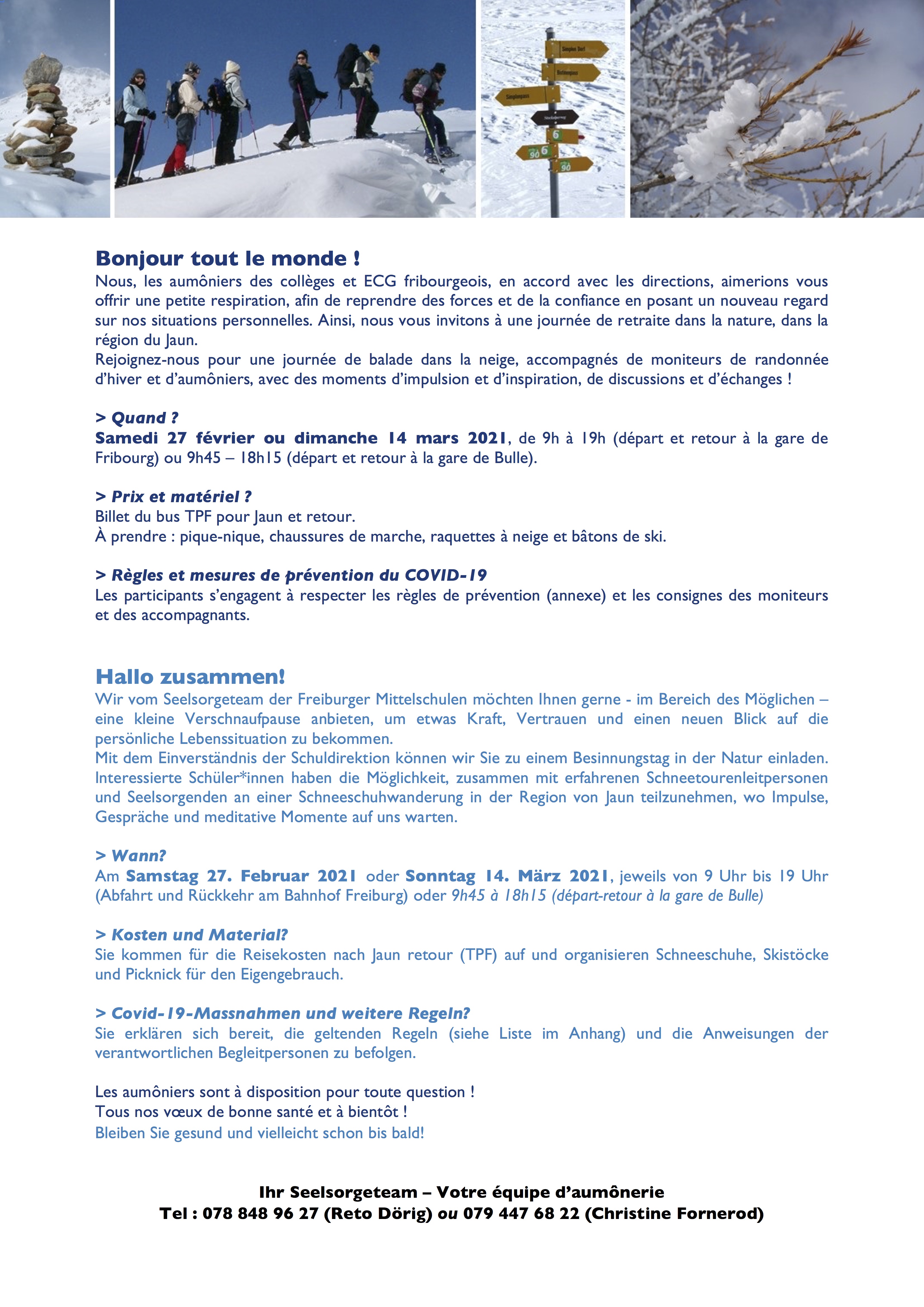 Attention : le nombre de places est limité ! Après le délai d’inscription, nous t’enverrons une confirmation de participation et les informations complémentaires.
