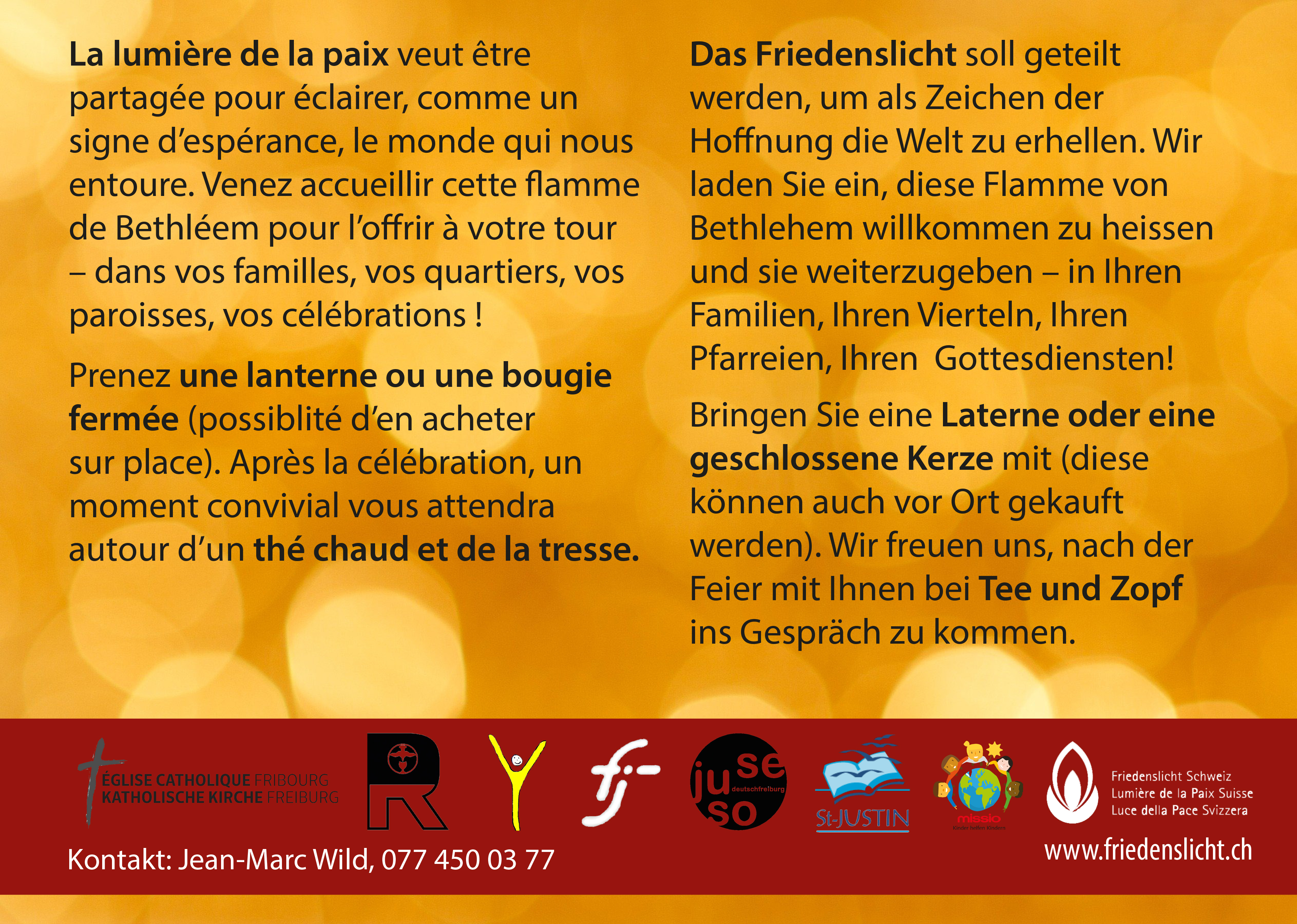Kontakt/Infos: Jean-Marc Wild, jmw@justinus.ch, http://www.friedenslicht.ch