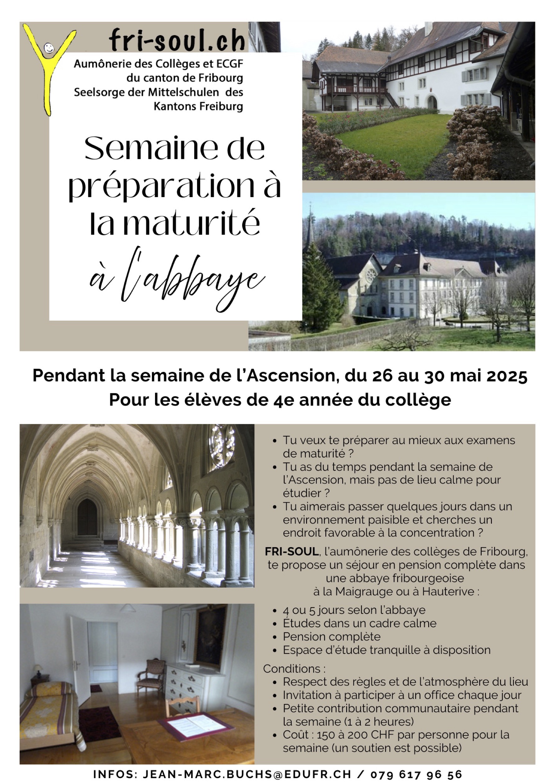 Inscriptions et renseignements auprès de jean-marc.buchs@edufr.ch d’ici au 16 mai pour la Maigrauge et au 20 mai pour Hauterive